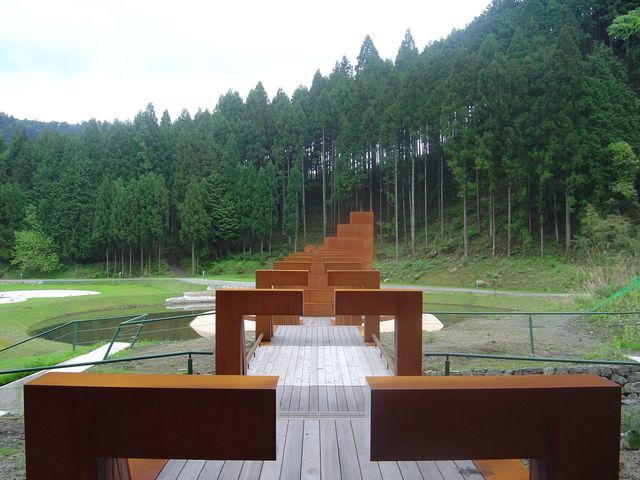 しかし、室生のものが札幌や鹿児島のものと違っているのは、スケールの破格さである。全長1km弱、総面積7.8haにも及ぶ広大な敷地の随所に、カラヴァンによるさまざまな“仕掛け”が展開するのだ。全体で一つの作品と見なすこともできる。カラヴァンは、当地の歴史的、文化的、神話的背景を踏まえて、訪れた者にさまざまな問いを発する。