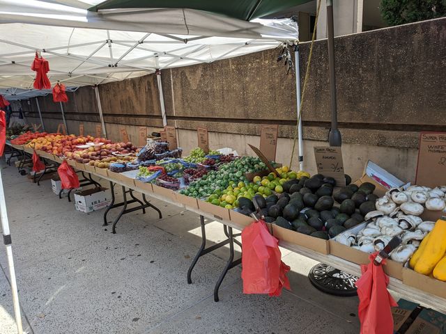 市内にいくつもあるファーマーズマーケットには、近在の農産物が集まり多くの市民は利用することで農業従事者を応援している