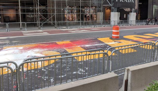 BLMのスローガンが五番街のトランプタワー前の車道に市長の許可で書かれたが、それに反対する何人もがペンキを投げつけた。これもまたニューヨークを表している