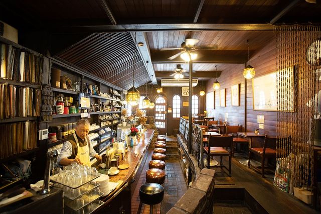 西荻窪駅から徒歩1分ほど、山小屋風の外観とあたたかな色合いのランプで誘うのは「コーヒーロッジ DANTE」。数年前に全席禁煙となったため、扉を開けた瞬間に珈琲の香ばしい匂いが飛び込んでくる。