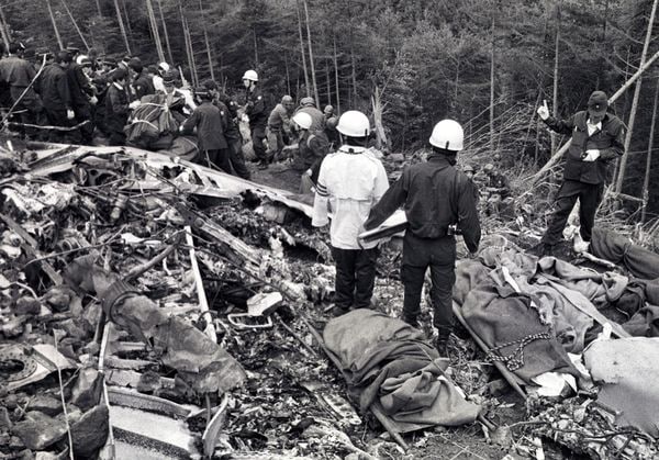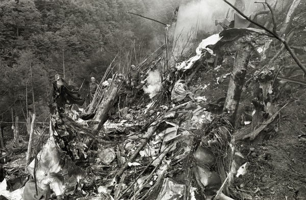 突然眼の前の視界が開けた。尾根の木々がほとんどなぎ倒されていたからだ。墜落現場はあらゆるルートから、蟻が這い上るよう登って来た自衛隊員、消防隊員やカメラマンたちの姿があった。