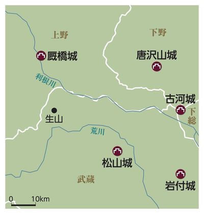 このためだろう。唐沢山城主・佐野昌綱は離反を疑われ、新たに擁立された古河城の新公方・足利藤氏もまた逃亡を企てている様子であった。松山城と対峙する氏康の姿は、それほど厳然として見えたに違いない。氏康の狙い通りになれば、政虎と関東は分断してしまう。