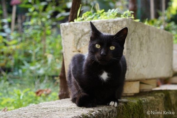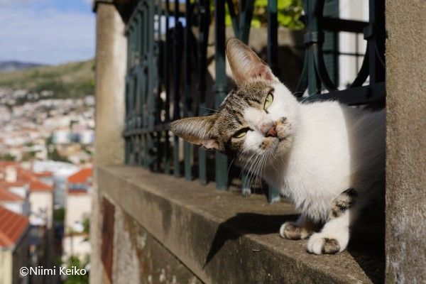「猫関所」のような階段がありました。通り過ぎようとすると、猫がひょっこりと顔を出して、いぶかしそうな目を向けてきます。「通行税」を徴収しようと思ったのでしょうか。