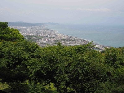 石垣山城から見た相模湾。豊臣秀吉が小田原攻めの本営として築いたのが石垣山城。秀吉は、このような景色を眺めながら、家康に関東への国替えを命じたのだろう。