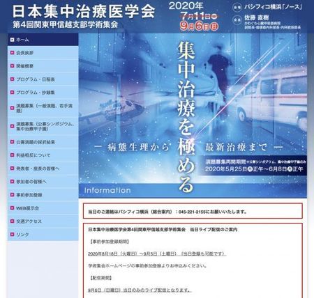 9月6日、第4回日本集中治療医学会関東甲信越支部学術集会が開催されました。いわゆる“学会”です。ビジネスや学校教育の現場など、社会全体が新型コロナウイルス感染症によって変容を余儀なくされたのと同様、今回の学会は例年とはまったく異なる形となりました。