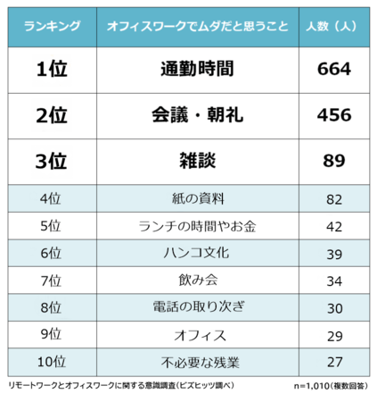 オフィスワークのムダは「通勤時間」がトップに