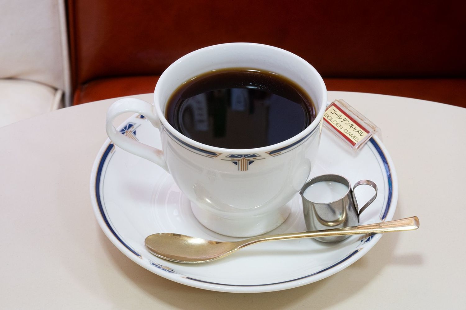 お店一押しの「ゴールデンキャメル」は深みがありながらすっきりとした後味。サイフォンでの淹れ方、豆の量は創業当時から変えていない。