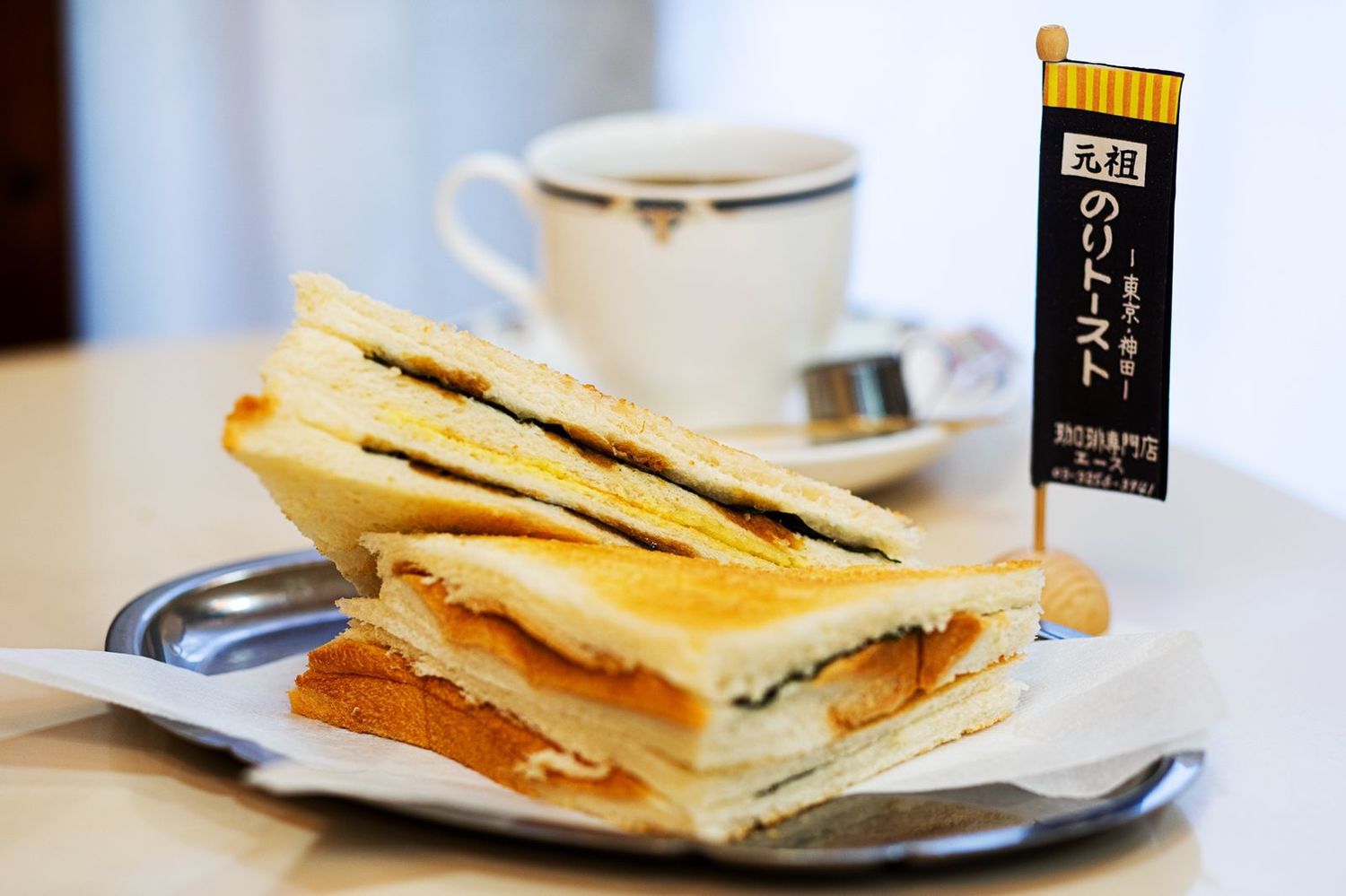エースの看板メニューでもある「元祖のりトースト」。幼い頃にお母さまが作ってくれたのり弁当をヒントに生まれたもの。200円という破格の値段は、せっかくなら珈琲も一緒に飲んで欲しいという理由から。