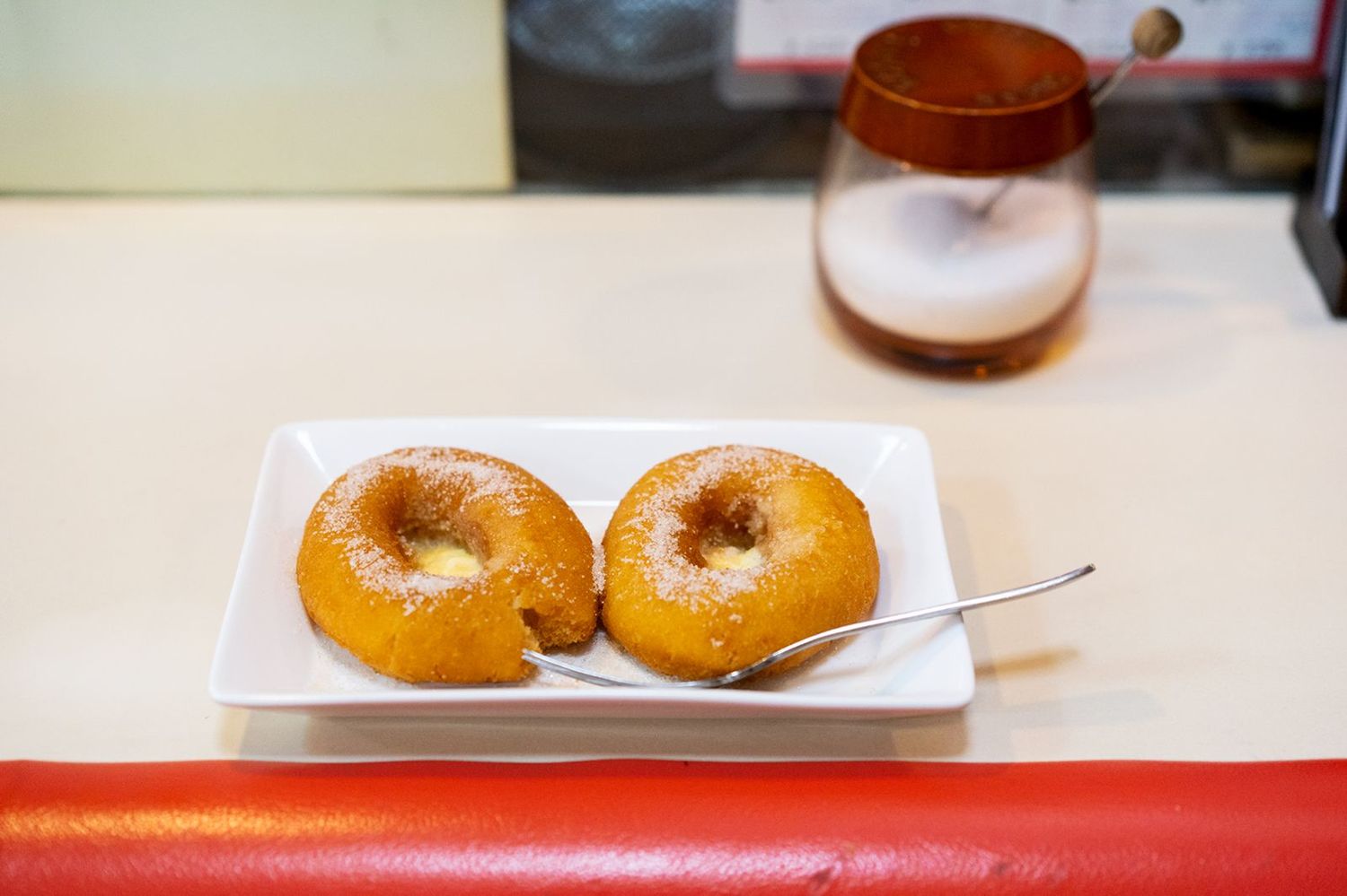 中心のバターを溶かしながらいただくアメリカンドーナッツ。珈琲のお供に。