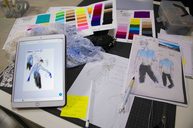 「単純に華やかなのではなく、世界観が表れる衣装にしてほしい、とは言われています。羽生さん自身、自分に似合う衣装のイメージを持っていると思います。フィッティングのときにも、『もっとここをキラキラさせてもいいと思います』と意見を言ってくださる」