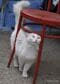 ズズズズズ・・・と不思議な音がしたので、見てみると、猫が椅子を動かしていました。きっと、頭を掻こうと思ったら、椅子が動いてしまったのでしょう。右目がブルー、左目がゴールドのオッドアイの猫でした。