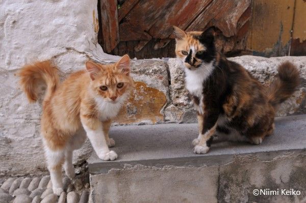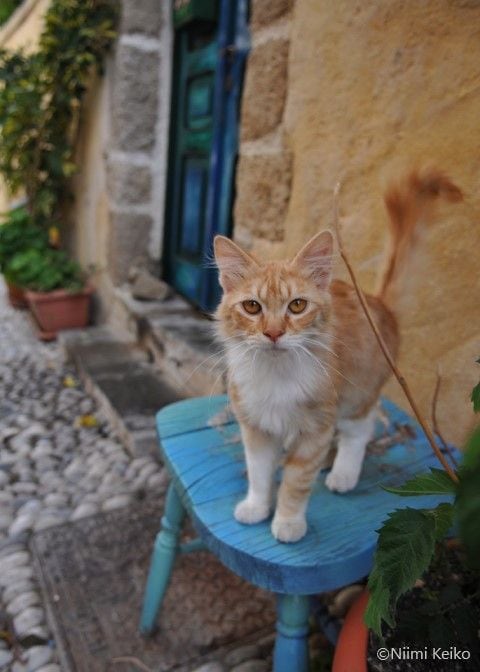ところが、離れた別の場所で再会し、びっくりしました。最初は、よく似た猫だろうと思ったのですが、撮った写真を見比べると、同じ猫です。ロドス旧市街で暮らす猫たちには、地図には載っていない秘密の通り道があるのかもしれません。