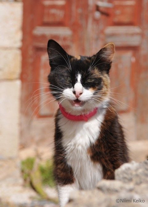 近くにもう1匹ミケ猫がいました。その場にいた飼い主の女性によると、この2匹は母と娘ということでした。なるほど、よく似た柄です。そうだ、子猫がいるか聞いてみようか、そう思ったとき、これを持って行きなさいと、お菓子が差し出されました。
