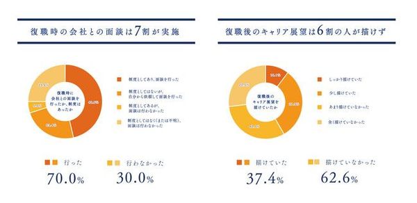 復帰時の面談時の様子を聞くと、「やりたい仕事や働き方の希望を聞かれる事もなく、決定事項を通告される場だった」(女性・正社員・子ども2歳)という声も挙がっており、会社と育休復帰者のキャリアをすり合わせる場として、うまく活用できていないケースもあるようだ。
