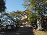 写真5:本丸の中から見た天守。本丸は狭い上に何かと邪魔ものが多い。整備当時は「映え」など考慮していなかった。