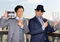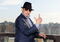 横浜の山手の丘をバックに「いいね!」ポーズを決める横山剣さん(撮影:青木 登/新潮社写真部、以下同)