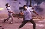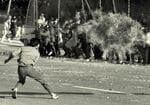 ソウルオリンピックの翌89年8月、北朝鮮の学生たちとの会談を企画した全大協(全国大学生代表者協議会)の学生デモ隊が、板門店に向けて延世大学を出発した。しかし、10メートルも進まないうちに彼らは白骨団に取り囲まれ、ボコボコに殴られ蹴られて、全員が数珠つなぎにされて逮捕された。