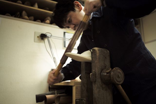 驚くほどピッチの細かい縫製や、丁寧な木型への吊り込み、表情豊かなトウシェイプなど、技術的なすごさはいくらでも挙げられそうだが、単に上質というだけでは彼の靴は語れない。作家性などに目もくれず、真正直な手仕事にこだわる彼の靴には、不思議と世界各国に遺された民藝品を彷彿させる温もりが宿っている。だからなのか、彼のアトリエやその靴を見ていると、日本民藝館やヴィクトリア&アルバートミュージアムを訪れているような暖かく、それでいて厳粛な気分になってくるのだ。