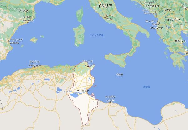 チュニジアはアフリカ大陸の北端にあり、地中海を挟んで向かい側にはイタリアのシチリア島があります。