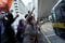 香港の裁判所で3人の民主活動家への判決が下された後、警察の車両の横に集まり3人に声をかける支持者たち(2020年12月2日、写真:ロイター/アフロ)