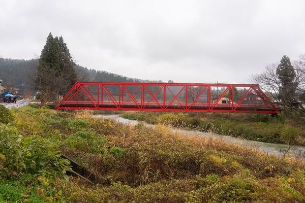 2つの橋桁を再利用したのは、信濃川の西を流れる渋海川(しぶみがわ)に架ける道路橋だ。「岩田橋」と「不動沢橋」という。