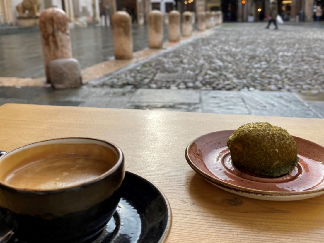 オレンジからイエローゾーンになった朝、ミオ・マリートが真っ先に向かったのはもちろんバールです。テイクアウトでなく、店内でカフェができることになり、少し日常に戻ったモデナのチェントロ(市街)が見える席でリモートワーク前のひとときを過ごしたのです。
