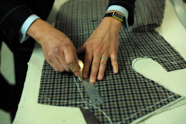 「日本人と英国人では、一般的なボディバランスが全く違うんです。日本人がなで肩でお腹の出た〝洋ナシ〟体型が多いのに対して、英国人は逆三角型で鳩胸の体型が多い。だから一般的な英国スーツの型紙は、前身頃を大きく、背幅を小さくつくるんです。これに対して日本人に合う型紙とは、前身頃は小さく、背中を大きめにつくったもの。袖の位置も異なります。こういう体型の違いを理解せずに、まんまサヴィル・ロウ流でやると、まずうまくいきません。とても難しいのですが、僕がつくるスーツでは、そのバランスを取っています」