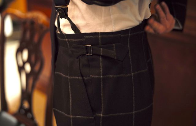 英国スーツでしか味わえない、様式美にあふれたディテールも魅力。付属品ひとつまで、英国ものにこだわっている