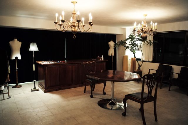 西麻布の住宅街に構えた、テーラー「FUMIYA HIRANO BESPOKE」のアトリエ。英国で修行した家具職人がしつらえた什器と、平野氏本人が床や天井を塗って仕上げたという空間は、実に英国的だ。完全アポイント制住所/東京都港区西麻布2-23-8 南雲ビル1階