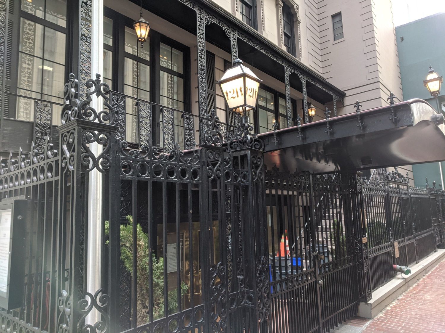閉鎖が決まった「21クラブ」のファサード。多くのゲストを迎えた鉄扉は固く締められ、見慣れた店の灯りだけが一流の意地を見せるのか寂しく点ったままである