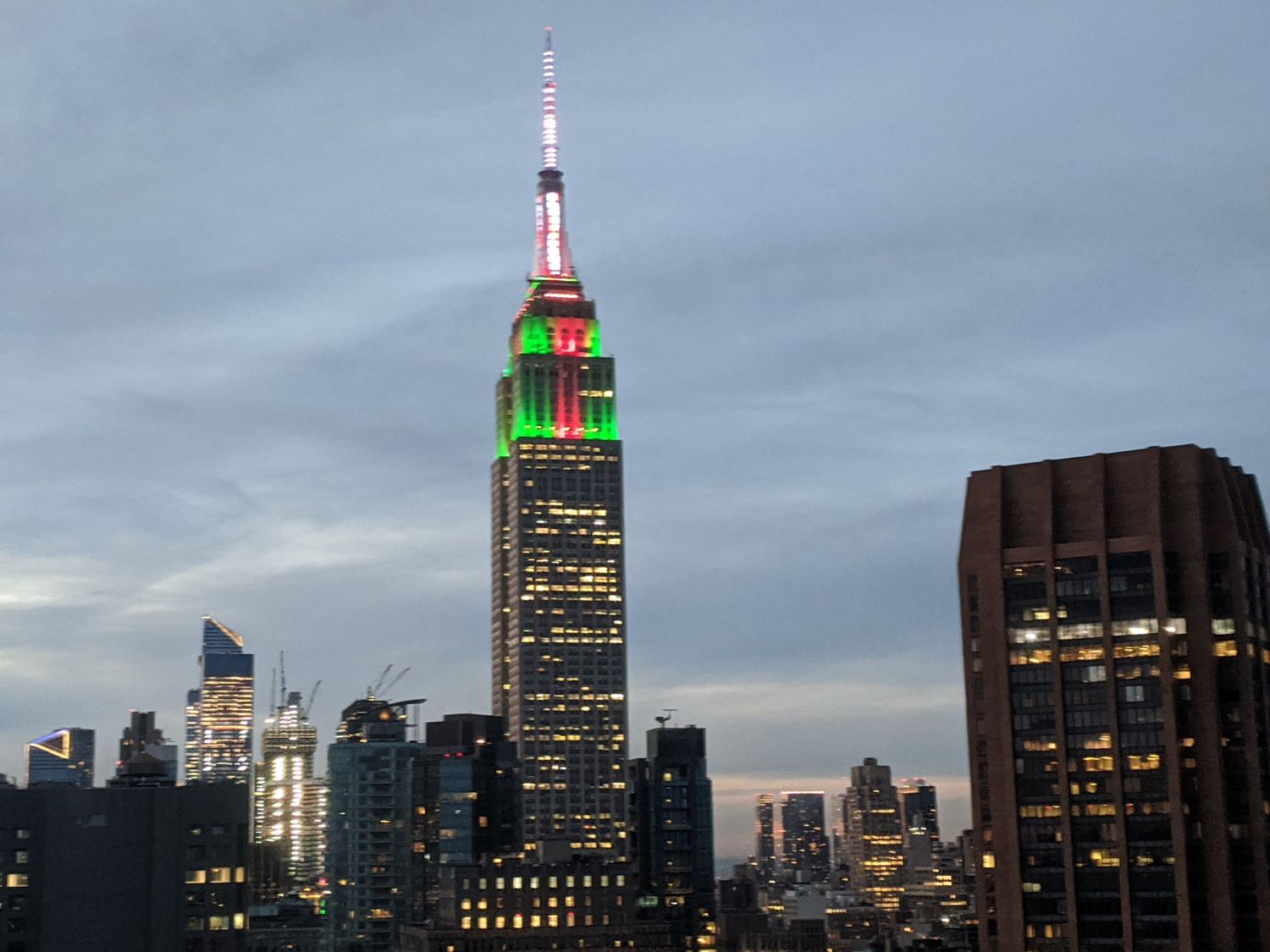 クリスマスのライティングに化粧したエンパイアステートビルは、パンデミックのなかでもひとり気高くそびえていた