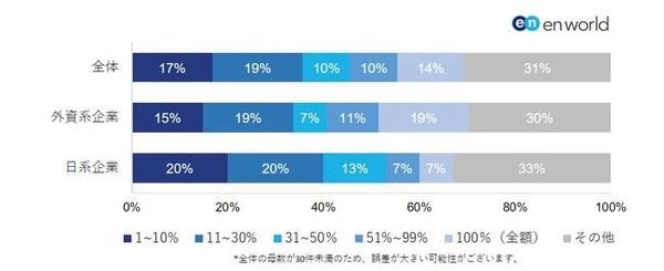 さらに、「賞与カットを実施した」とした企業にカット幅を聞くと、最も多かったのは「11~30%」(外資系:19%、日系:20%)だった。また、この件に関して企業からは、次のようなコメントが寄せられている。