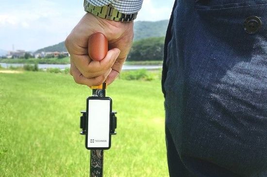 所在地を通知する“タグ”を杖などに付けておけば、徘徊する高齢者の位置を把握できる(写真提供:テクノスジャパン)