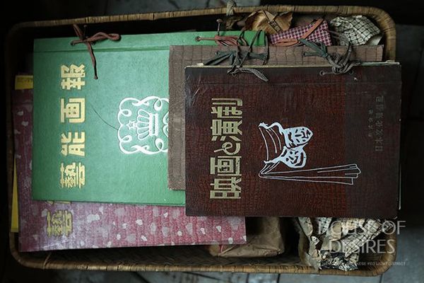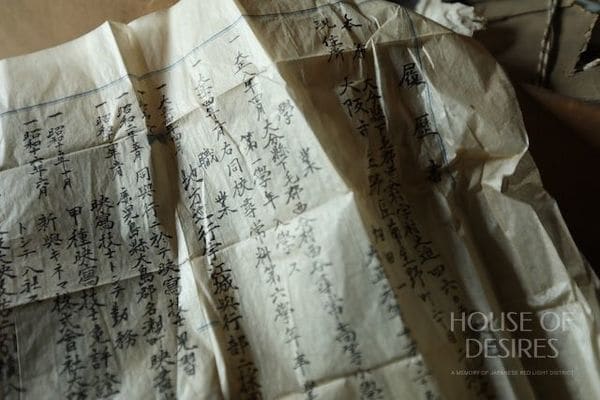座敷に無造作に置かれた段ボール箱の中には、当時の女優のピンナップや借金5000円の契約書、遊廓の従業員の履歴書や高級時計を購入した際の日掛け金融の契約書、宝くじの外れくじなどがあった。『映画と演劇』『芸能画報』『ジャズ用語辞典』などの雑誌からは所有者の趣味がうかがえる。