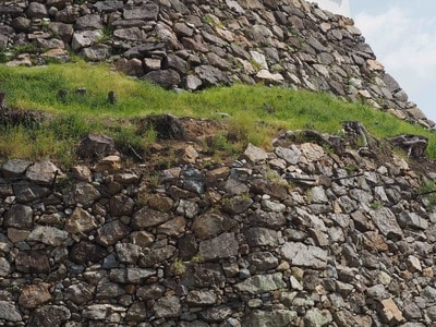 姫路城に残る秀吉時代の石垣。城は関ヶ原の合戦後に入った池田輝政によって現在見るような姿に整えられたが、部分的に秀吉時代の石垣も残っている。撮影/西股 総生