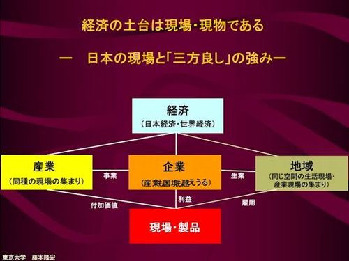 こうした付加価値を生んでいる場所は、企業に対して利益貢献をしています。そして、産業に対しては付加価値を生み出し、地域に対しては雇用の安定を提供しています。この「三方良し」は何百年も前から日本の産業人、近江商人が言っていたことです。