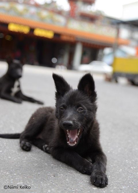 帝君廟という道教寺院の近くには、何匹も犬がいて、寺院を訪れる人からおやつをもらっていました。