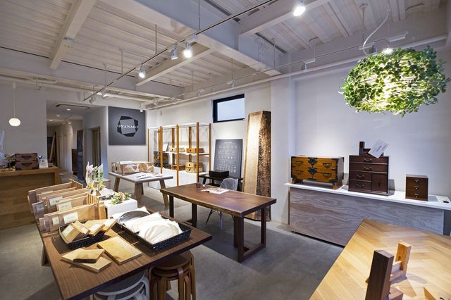 小柳箪笥の店内。木目も美しい箪笥や小物が整然と並べられている