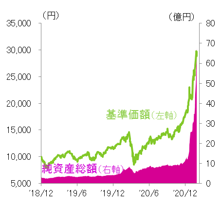 ファンドについて:純資産総額67億円、1年騰落率116.7%(2021年1月末時点)