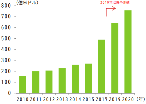 期間:2010年~2020年 (2019年以降は2019年時点における予測値、2016年、2018年はデータなし)
