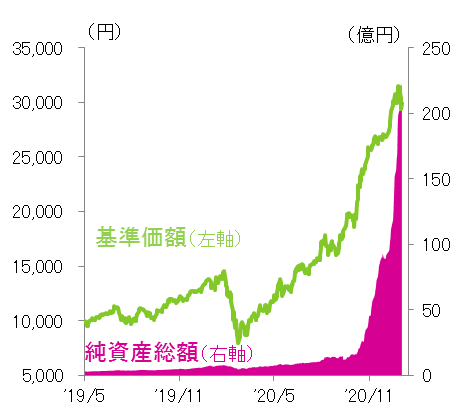 ファンドについて:純資産総額223億円、1年騰落率126.5%(2021年1月末時点)