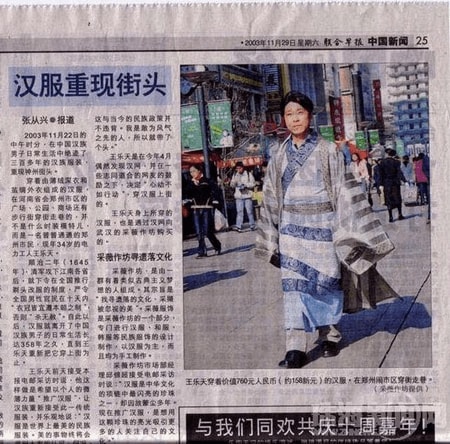 2003年、チャイナドレスなどの比較的歴史の浅い衣装ではなく、本来の意味の伝統的な民族衣装(漢服)が中国国内のデザイナーの手によって再現されました(漢服復刻)。そのことが中国国内外のメディアに大きく取り上げられたのですが、それがニュースになること自体、中国の伝統文化が日常生活と離れたものであることを示しています。