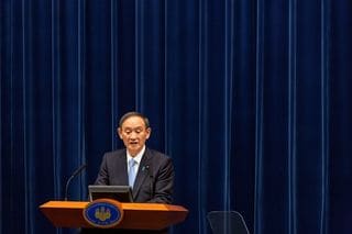 緊急事態宣言の2週間延長を表明した菅首相(写真:代表撮影/ロイター/アフロ)