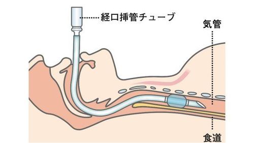 人工呼吸器とは、その名が示す通り、患者自身の呼吸だけでは生命の維持ができない状態になった時に、人工的に呼吸を補助する機械です。マスクで行う比較的軽い人工呼吸もありますが、ほとんどの場合は気管チューブを口から気管の中に挿入します(=気管挿管)。また、治療が長期に及ぶ場合は、喉を切開して、そこから気管にチューブを入れることもあります。こうして、機械によって人工的に息の出し入れを行うわけです。