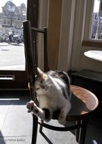 こちらは、麻製品など「自然なもの」を扱う雑貨店。店の玄関に生後半年くらいの猫がいました。隣のトルコ・レストランの猫なのですが、店が混み合うランチタイムには、こちらの雑貨店に避難して招き猫をしているのだそうです。