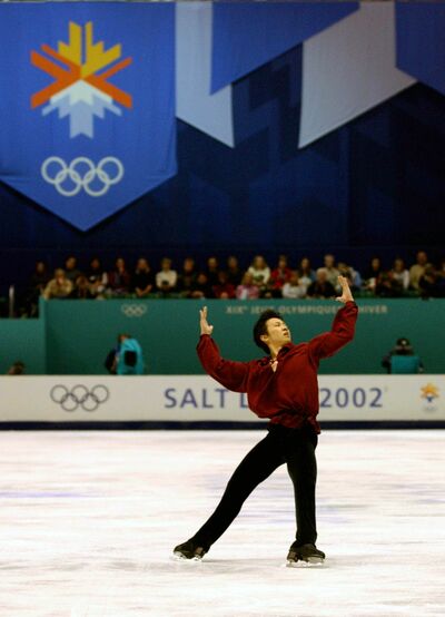 2002年ソルトレイクシティ五輪、フィギュア男子FSでの本田武史。写真=Press Association/アフロ