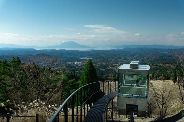 露天風呂は絶景の特等席になっている。すすき野原の向こうには、右肩上がりに見える桜島が錦江湾に浮かぶように見える。夕日や満天星、霧模様など、刻一刻と表情を変える景色にも癒される。
