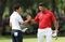 4月11日、マスターズを制し、日本人男子悲願の海外メジャー初優勝を果たした松山英樹(右)とキャディーの早藤将太さん(写真:AP/アフロ)