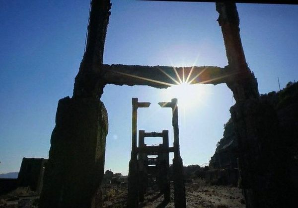 軍艦島内のベルトコンベアの支柱(写真:軍艦島を世界遺産にする会資料、以下同じ)