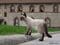開いたドアから出てきました。お城の中で暮らしているのでしょうか。